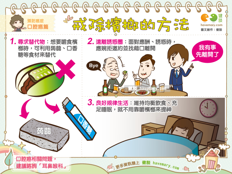 日常留意均衡飲食、維持充足睡眠,就不用靠嚼食檳榔來幫助提神。